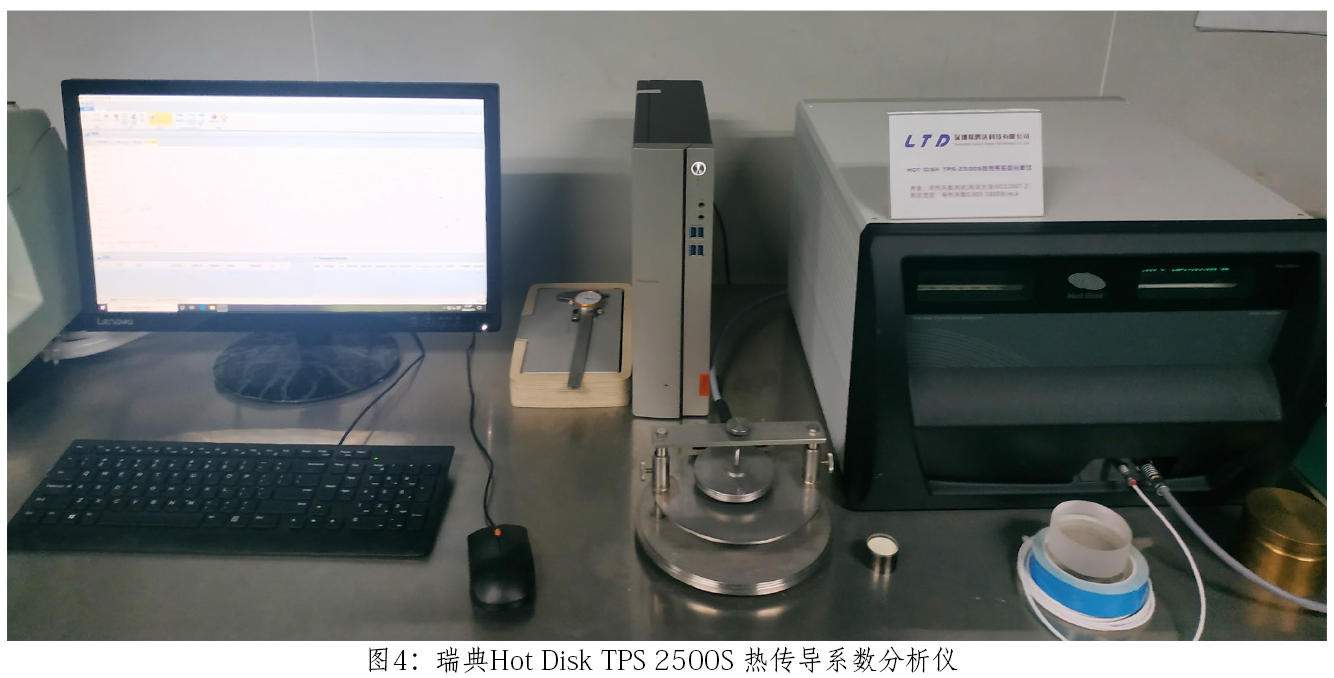 (1) 首先依照ISO 22007-2 測試標準,我們用瑞典Hot Disk TPS2500S 熱傳導系數(shù)分析儀,對兩款產(chǎn)品的熱導率進行測試。