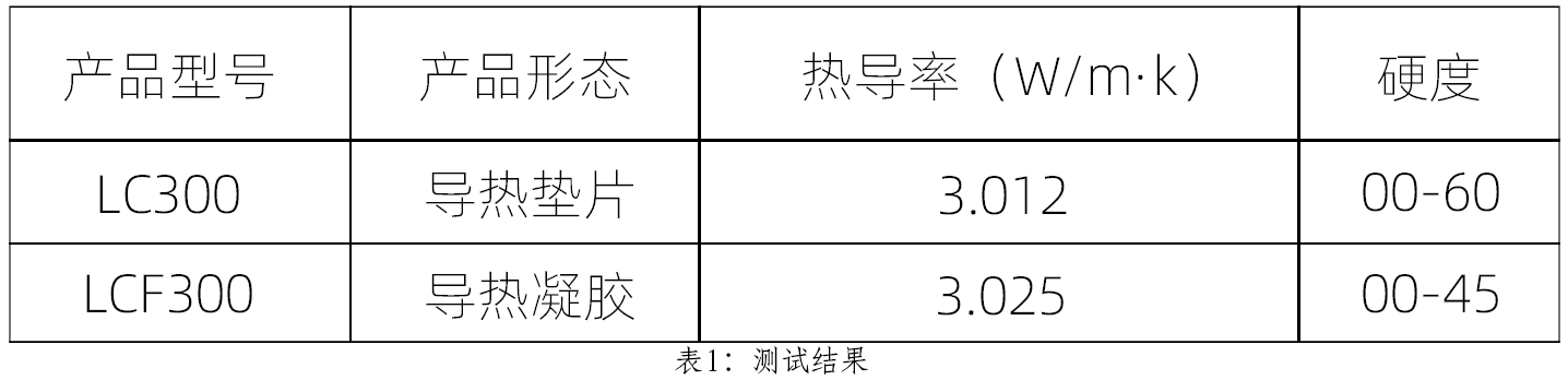 為了對比導熱墊片和導熱填縫膠的界面熱阻的差異,我們選取了聯(lián)騰達LC300 導熱硅膠片跟LCF300 雙組份導熱凝膠(填縫膠),進行此次探究實驗。
