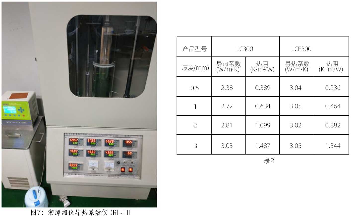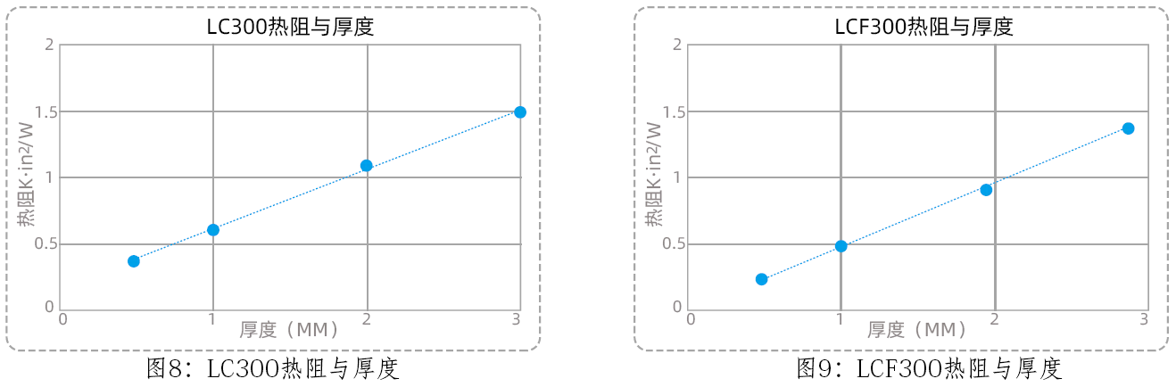 熱阻=材料本身熱阻+界面熱阻, LCF300 熱阻=材料熱阻+0, LC300 熱阻=材料熱阻+0.187,所以,LC300 湘潭測試導熱值不準確是由于高界面熱阻導致的。