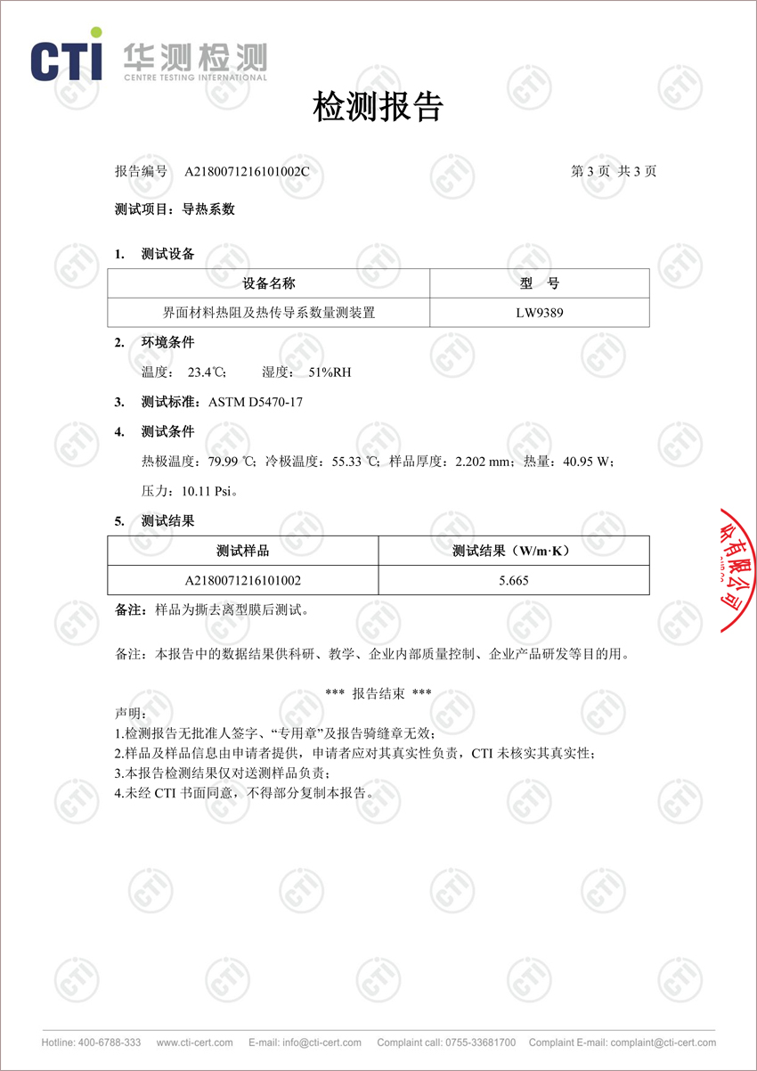LC600導(dǎo)熱硅膠片實測認(rèn)證 2019-04-25(7569)次瀏覽 我司專注導(dǎo)熱材料的研發(fā)生產(chǎn),具備十年行業(yè)經(jīng)驗,我司超高導(dǎo)熱硅膠片LC600導(dǎo)熱硅膠片均為實測參數(shù),可提供第三方權(quán)威機構(gòu)檢測報告 上一篇:LC500導(dǎo)熱硅膠片導(dǎo)熱實測報告 下一篇:導(dǎo)熱硅膠ROHS認(rèn)證 返回列表